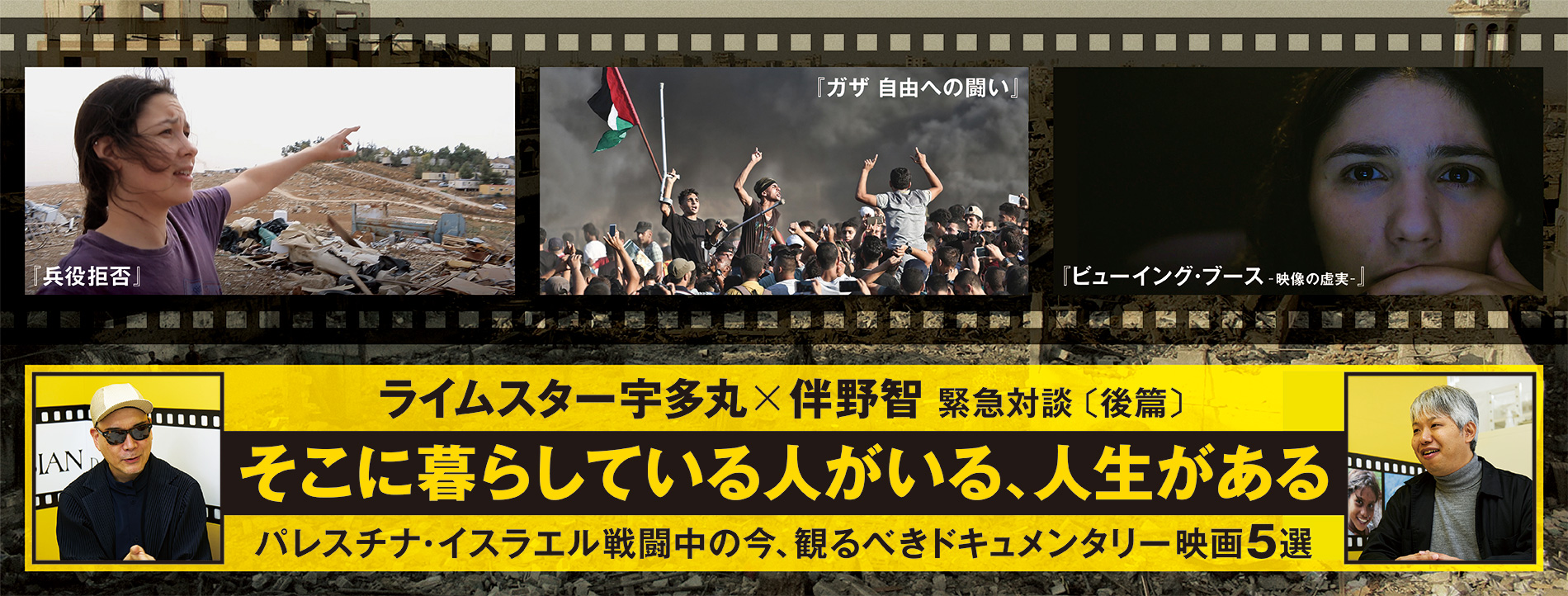 書籍掲載予定の対談を先行で公開しています。パレスチナ・イスラエル戦闘中の今、観るべき5本のドキュメンタリーについて話し合いました。